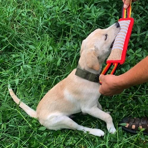 this sleeve allow the dog to get a full, firm bite hard bite — this helps with developing bite strength and confidence.
